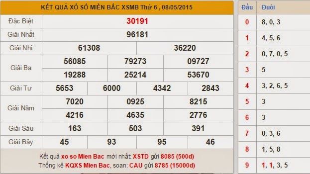 Thống kê và tiên đoán XSMB - KQXSMB ngày 09/5/2015 cùng xosowap tiên đoán thì con số đẹp nhất có khả năng xuất hiện trong kết quả xổ số miền bắc của hôm nay.